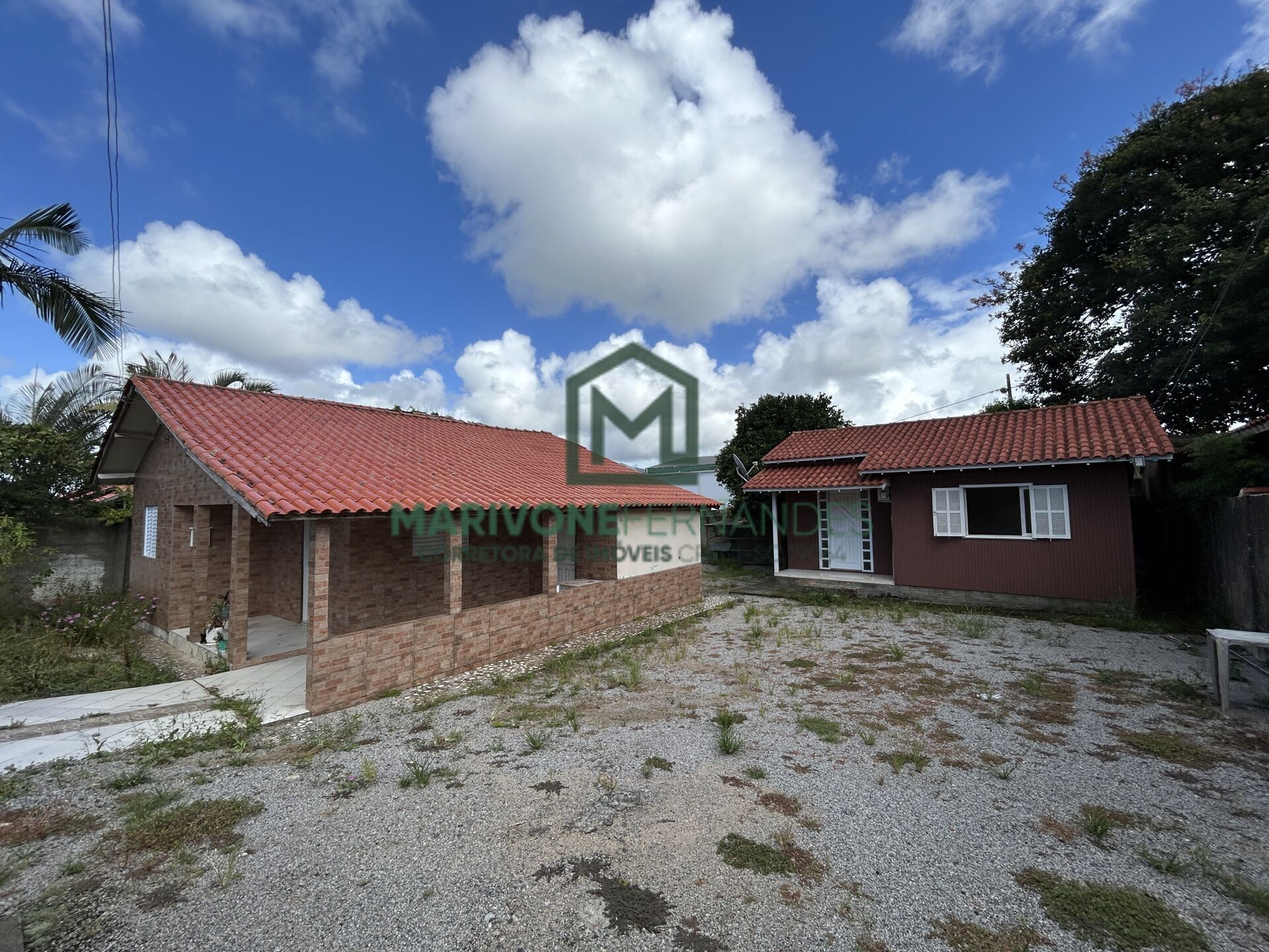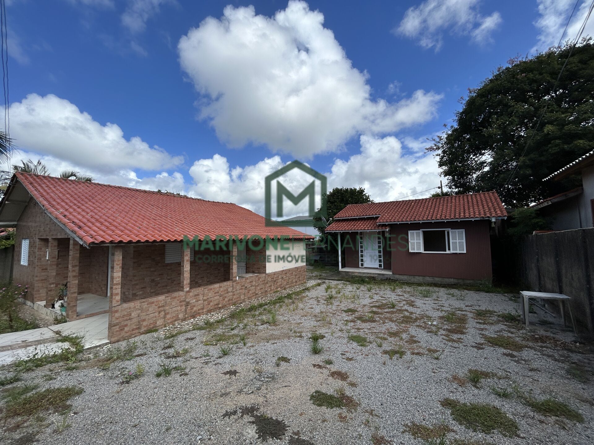 São duas propriedades, uma de alvenaria com três dorms e outra casa no mesmo terreno de madeira/mista.